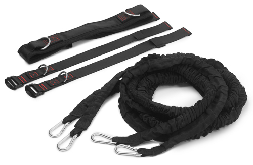 Football Goalkeeper Harness е специално проектиран тренировъчен инструмент за вратари, за да подобрят рефлексите и ловкостта на защитните си умения. Включва подплатен колан за кръста с 10 см ширина, 2 латексови бънджита, покрити с ръкави, всеки с дължина 2 метра, за свързване към стълбовете на вратата и здрави ленти за фиксиране на място. Това оборудване се доставя с маркова чанта за удобно транспортиране. Това е основен инструмент за вратарите, които имат за цел да подобрят своите умения и цялостно представяне.